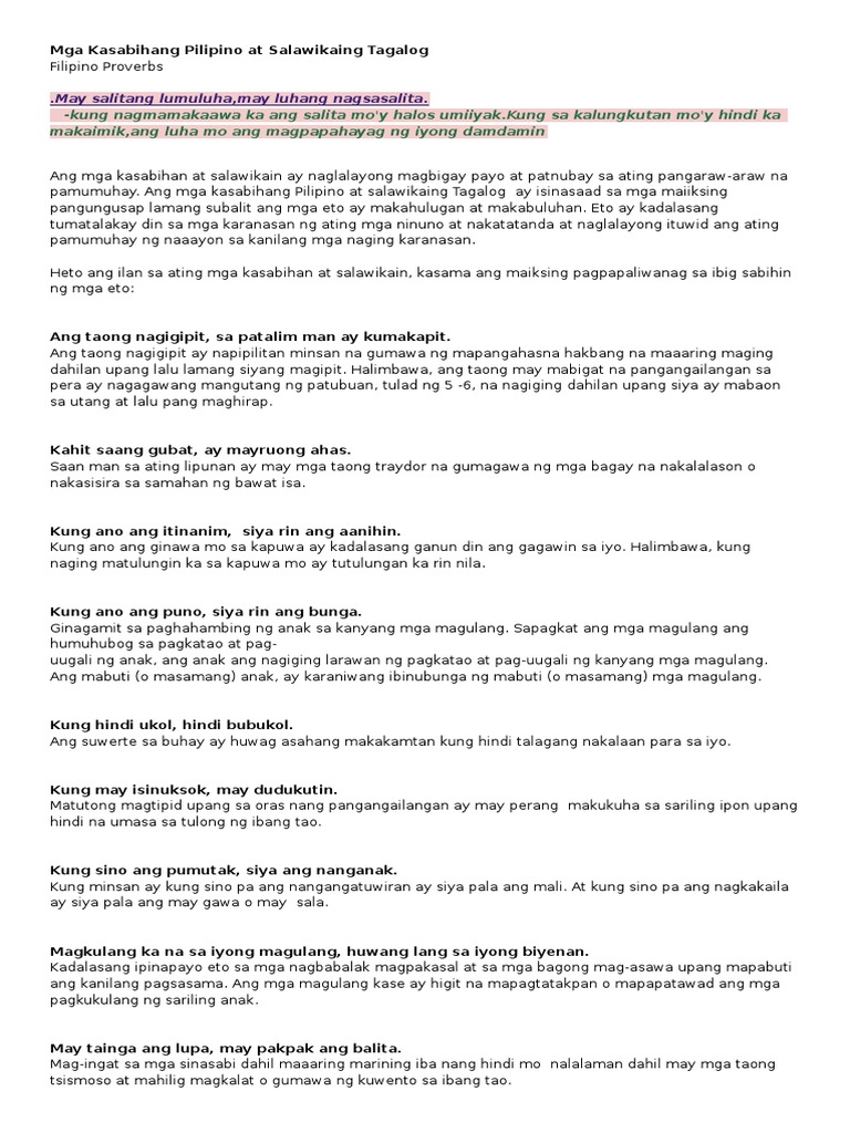 Mga Kasabihang Pilipino At Salawikaing Tagalog Pdf